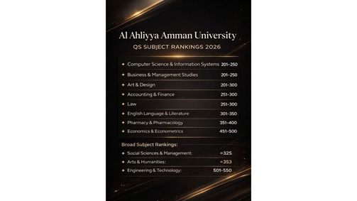 عمان الأهلية الأولى على الجامعات الخاصة بكافة التخصصات وفق تصنيف QS العالمي 2026