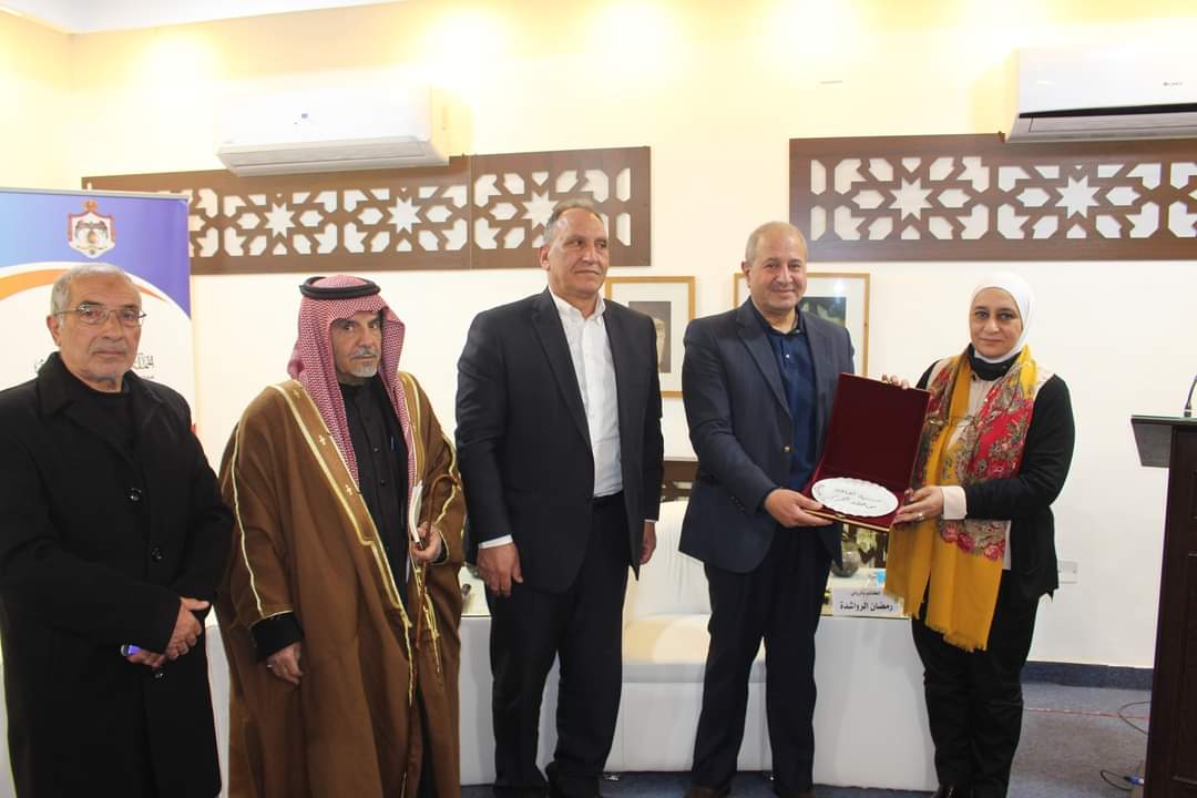 حيث تكلم كل من الأستاذ الدكتور حسين المحادين من جامعة مؤتة والدكتور محمد المعايطة والمؤرخ الدكتور يوسف الحباشنة والكاتب نايف النوايسة وتم إهداء الرواشدة درع شكر من مدير ثقافة محافظة الكرك عروبة الشمايلة تكريمآ له …فيما تم توزيع نسخ من الرواية علي الحضور