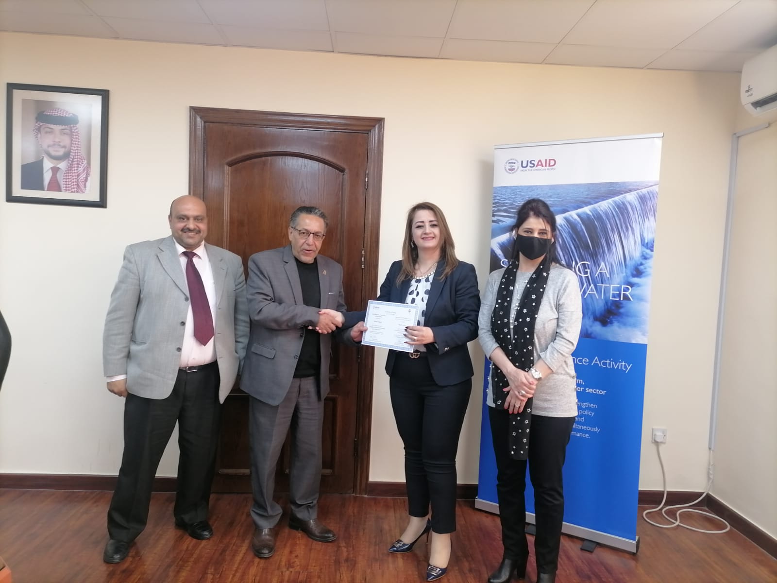 من جانبه ثمن السيد ماجد قطيشات رئيس فريق التطوير المؤسسي في مشروع حوكمة قطاع المياه الجهود التي تبذلها الوزارة في دعم المشروع ودعم قطاع المراة مقدما اشكر باسم المشروع وال usaid للوزارة على تعاونها المستمر مع الشركاء لتقديم ماهو افضل لقطاع المياه وتنفيذ اسياسيات ادماج النوع الاجتماعي لما له من اثر في تحقيق اهداف التنمية المستدامة وبالتالي العمل والتواصل مستمر نحو الانطلاق الى المحافظات والشركات لتوسيع العمل والوصول للعاملين والعاملات في المناطق النائية لادماجهم في العمل المؤسسي الذي من شأنه تطوير قطاع المياه .