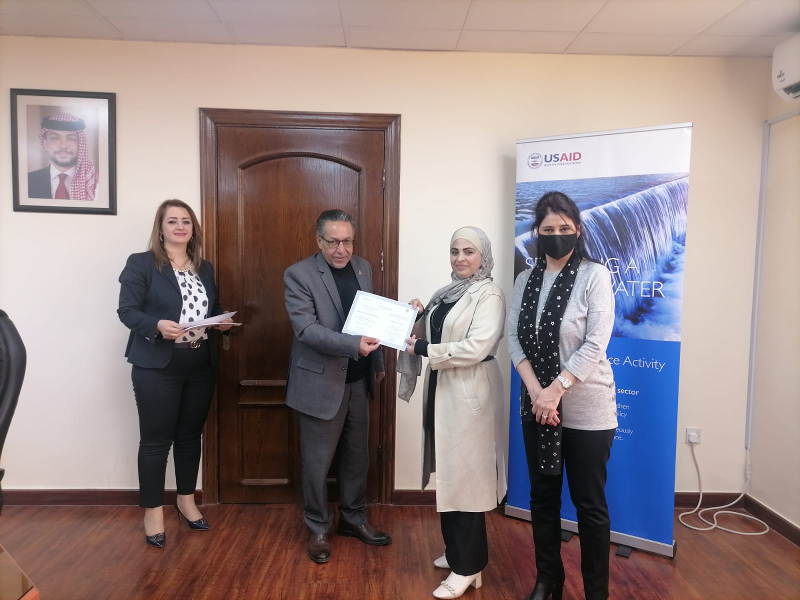 رعى امين عام وزارة المياه والري الدكتور جهاد المحاميد بحضور المساعد لشؤون الإدارية والمالية السيد محمد عفيشات الحفل التكريمي الذي اقامته وحدة دراسات المرأة في قطاع المياه للمشاركين والمشاركات في البرنامج التدريبي ل (اساسيات ادماج النوع الاجتماعي في قطاع المياه) الذي اقيم لفريق ادماج النوع الاجتماعي في قطاع المياه بتاريخ 8 اذار 2022 والذي نظمته وزارة المياه والري بالتعاون مع مشروع حوكمة قطاع المياه الممول من الوكالة الأميركية للتنمية الدولية ال USAID.