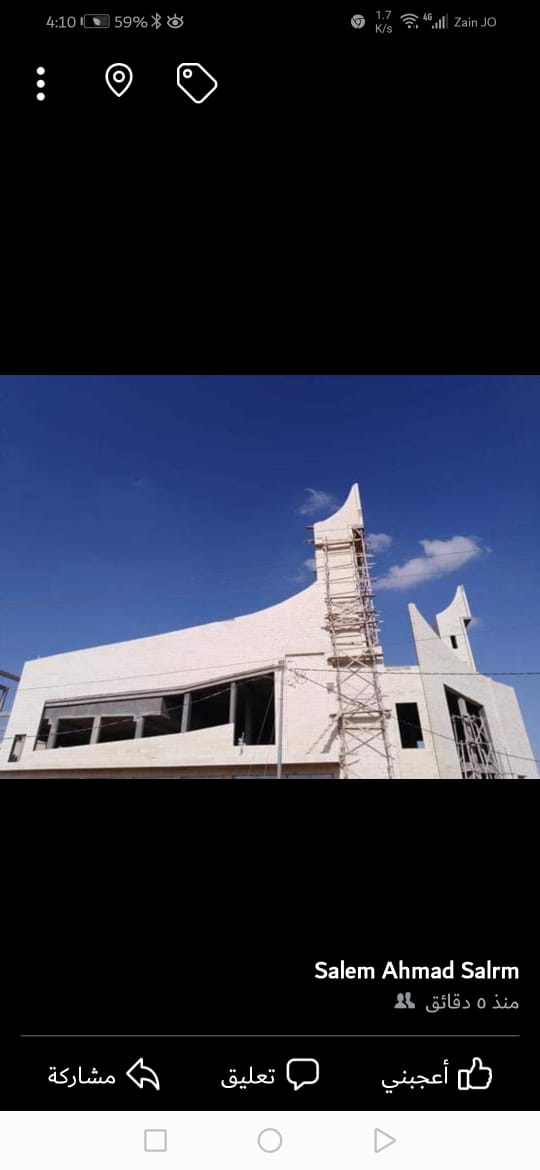 لااعلم هل اصبح هذا المعلم الاسلامي الذي بني عن روح شهيد الوطن معاذ الكساسبه بتبرع سخي من محسن من خارج الاردن في عالم النسيان حيث اصبح يتائكل البناء ويسقط حيث سقطت حجارته في العام الماضي واصبح يشكل خطوره واجزم انه لا يقل اهميه عن ابراج عمان التي وجدت طريقها للحل وهل دولة رئيس الوزراء حين زار الكرك ومر من جانبه الام يلفت انتباهه هذا البناء ليجد حل لمشكلته العالقه من سنوات. المجمع يضم مسجد مساحته 900 متر ومصلى لنساء ودار للقران وجمعيه خيريه تديره وسكن للامام والمؤذن انه مجمع اسلامي متكامل لكنه لم يكتمل بتقصير من الدوله اتجاه الشهيد والمجمع الاسلامي ارفق بعض الصور للمجمع وقبل ان تبداء حجارته بسقوط وبعد ان سقطت .المجمع يقع على مدخل جامعة مؤته جامعة السيف والقلم ويمر من جانبه كل زوار الجامعه وطلابها وموظفيها بجانب دوار طائرة الشهيد…. سالم مبيضين