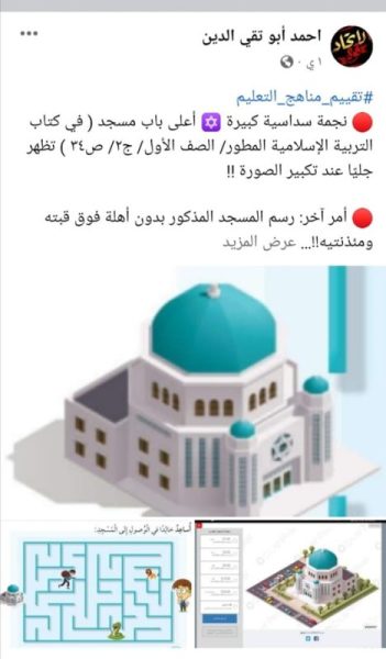 في كتاب الصف الأول “كنيس” يهودي بدلاً من المسجد (صور)