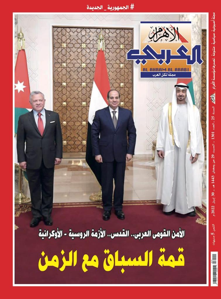 خصصت مجلة الأهرام العربي، عددها الأخير غلافاً وافتتاحية، للقمة الثلاثية التي جمعت، مؤخراً في القاهرة، جلالة الملك عبدالله الثاني والرئيس عبدالفتاح السيسي وولي عهد أبو ظبي الشيخ محمد بن زايد.