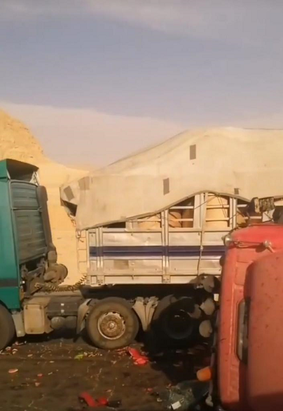 وقال المصدر إن الحادث وقع بين شاحنات عدد 2 "تريلات" مع ديانة محملة بالبطيخ، مشيرا الى انه نتج عن الحادث اصابتين تم نقلهم الى مركز القويرة، وتحويل حركة السير من قبل الدوريات الخارجية.