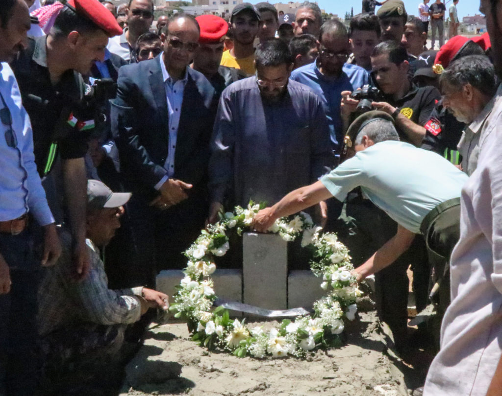 وجرى للشهيد مراسم عسكرية نُقل خلالها إلى مثواه الأخير محمولاً على أكتاف رفاق السلاح ومكللاً بالعلم الأردني، بحضور مندوب القيادة العامة للقوات المسلحة الأردنية – الجيش العربي المساعد للعمليات والتدريب العميد الركن عبد الله شديفات، حيث قام بوضع إكليلٍ من الزهور على ضريح الشهيد.