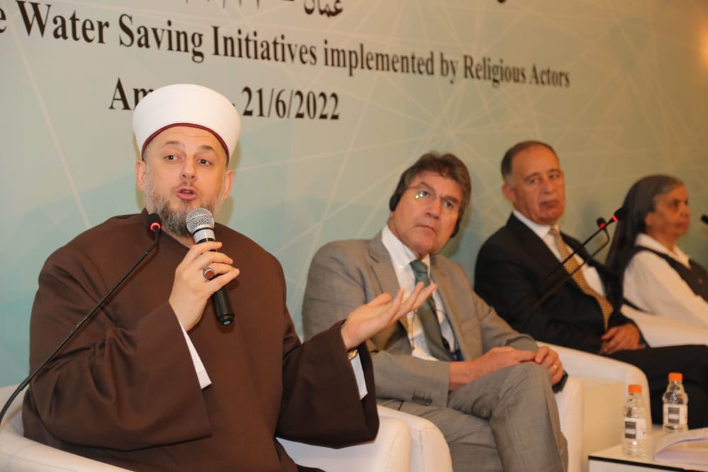وقال امين عام دائرة الإفتاء العام احمد الحسنات نجتمع هذا اليوم في للمحافظة على سبة الحياة الماء.. التوجيه الديني اكثر رسوخا.. لذلك قمنا ببذل مزيدا من الوعي على قيمة المياه.. وقد ساهمت إدارة الافتاء بإصدار عدد من الفتاوى التي تؤكد على الحفاظ على المياه منها حرمة الاعتداءات على المياه و الإسراف في المياه وقامت باصدار عدد من الادلة التوعوية وعقد لقاءات وحلقات متلفزة تتعلق باستخدام المياه والحفاظ عليه. مقدما الشكر لوزارة المياه والري لرعايتها لهذا المشروع بالتعاون مع الشركاء للحفاظ على موارد الأردن المائية.. فكانت هذه الجهود قصة نجاح بمزيدا من برامج الوعي المجتمعي.