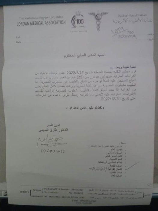 انتقد الدكتور محمد الطراونة، المتخصص بالأمراض الصدرية وأمراض النوم، والمرشح السابق لعضوية مجلس نقابة الأطباء، القرار الذي أصدرته النقابة مؤخراً والذي يتضمن إعفاء الأطباء دون 35 سنة من الرسوم.
