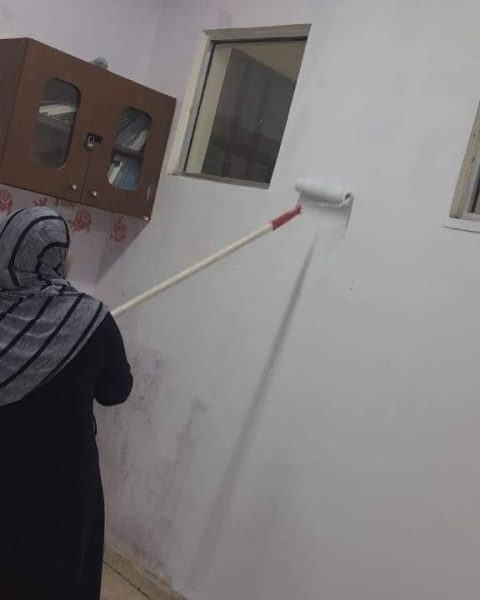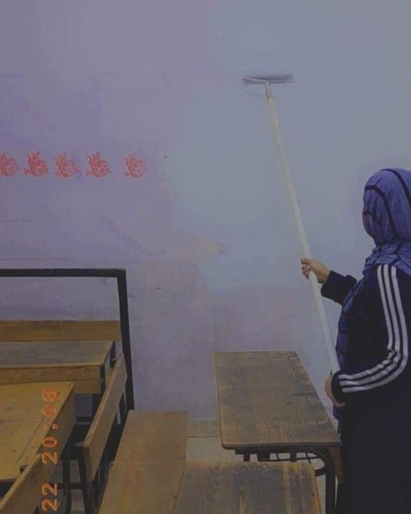 وقامت “أبو مرشود” التي تدرس الصف الأول الابتدائي في مدرسة حي العرقوب الأساسية في البادية الشمالية الغربية بإعادة طلاء الغرفة الصفية استعدادا لاستقبال طلابها الجدد.