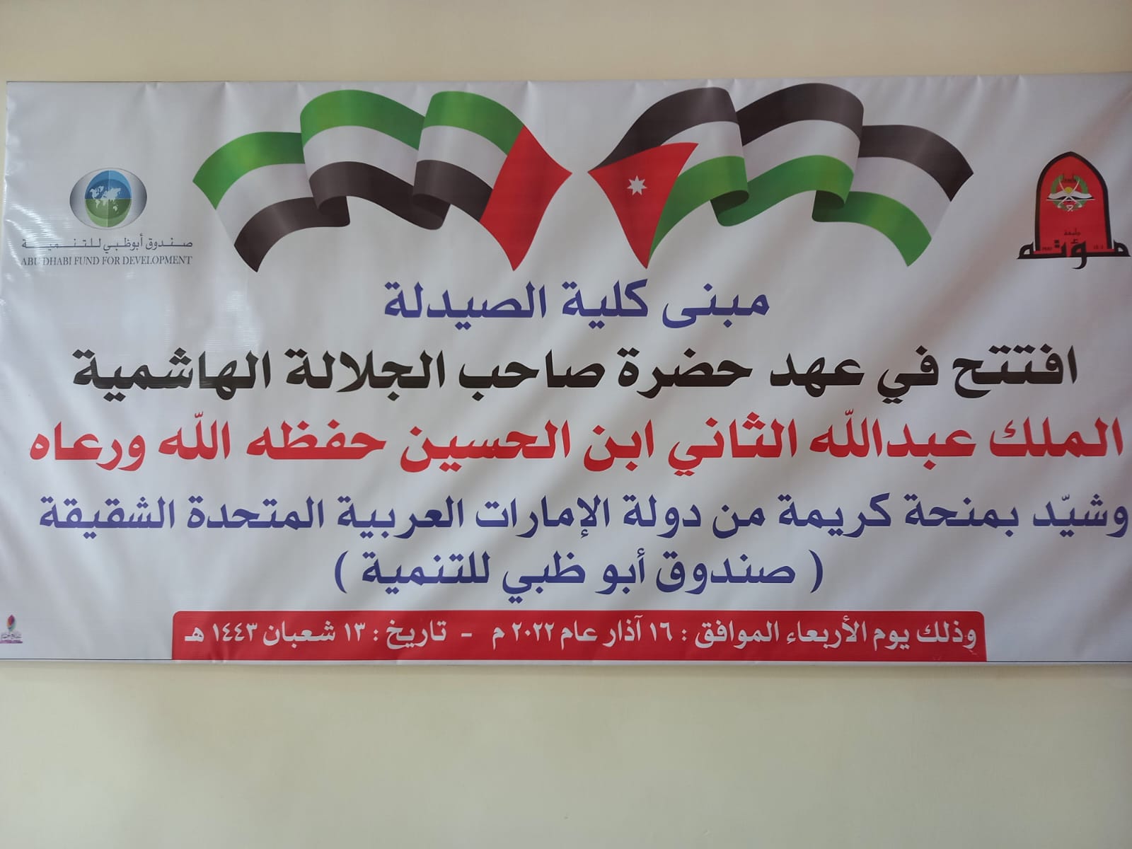 وكما اشتملت الجولة على زيارة لكلية الصيدلة التي أسست بمنحة حوالي 5 مليون دولار من دولة الإمارات العربية (صندوق ابو ظبي للتنمية)والتي تم المباشرة بالتدريس فيها في بداية الفصل الدراسي الصيفي الحالي من العام الجامعي 2021/2022 بالإضافة إلى زيارة للمسبح النصف أولمبي في كلية الرياضية والذي يبلغ طوله 25م والعرض 12م ونصف وبعمق 4م ويساعد هذا المسبح في إعداد الفئات الثلاثة في كلية الرياضة من معالجين ومدربين ومدرسين حيث إن هذا المسبح مرخص من مركز إعداد القادة الشباب التابع لوزارة الشباب.