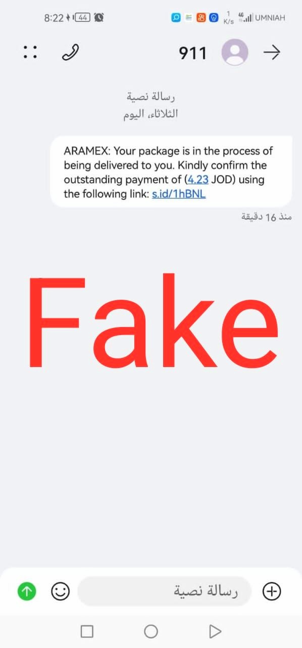 الامن العام يحذر من رسائل وهمية تستخدم رقم 911