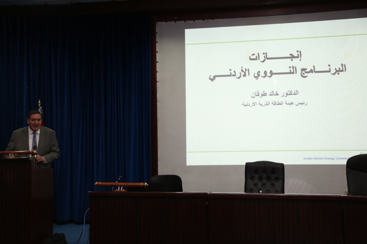 أقيمت في وزارة المياه والري /سلطة المياه بالتعاون مابين نقابة الجيولوجين الاردنيين ووزارة المياه والري وهيئة الطاقة الذرية يوما علميا حول انجازات البرنامج النووي الأردني بين الواقع والطموح بحضور الدكتور خالد طوقان رئيس هيئة الطاقة الذرية وسفير خادم الحرمين الشريفين سعادة الشيخ نايف بن بندر السديري سفير المملكة العربية السعودية وامين عام وزارة المياه والري الدكتور جهاد المحاميد وامين عام سلطة المياه المهندس بشار البطاينه ونقيب الجيولوجين المهندس خالد الشوابكه والنائب صالح العرموطي وعدد من كبار الباحثين واساتذة الجامعات ونخبة من كبارموظفي الهيئة والنقابة وموظفي قطاع المياه.