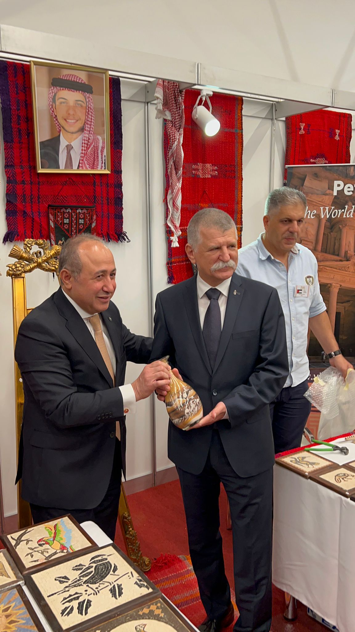 شارك الاردن في معرض الثقافة العربي الذي انطلق تحت رعاية رئيس مجلس النواب الهنغاري لاسلو كوڤير في العاصمة الهنغارية بودابست. وحوى الجناح الاردني اعمالا حرفية اردنية من الفسيفساء والفن التشكيلي والرسومات داخل قوارير الزجاج. فيما عبر الحضور عن فرحتهم بتذوق المأكولات الاردنية المختلفة وتمور المجهول الاردنية. وحظي الجناح الاردني، باهتمام عربي واجنبي كبير ونال اعجاب الحضور. وقدم القنصل الاردني لدى هنغاريا المهندس زيد نفاع لوحة فسيفساء تحمل اسم رئيس مجلس النواب الهنغاري لاسلو كوفير وزجاجة رمل كتب عليها اسمه. فيما عبر كوفير عن اعجابه بالفن الاردني، وشاكرا على اللوحة الزجاجية وزجاجة الرمل. وحضر الاحتفال عدد من المسوولين الهنغاريين وسفراء الدول الصديقة وابناء الجالية والطلبة الاردنيين والعرب. ويهدف يوم الثقافة العربي في بودابست الى التعريف بالثقافة العربية والعلاقات الهنغارية العربية.