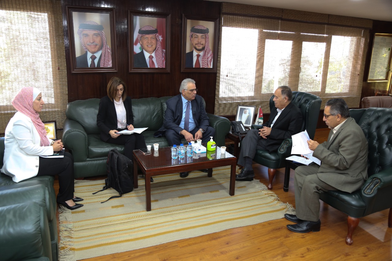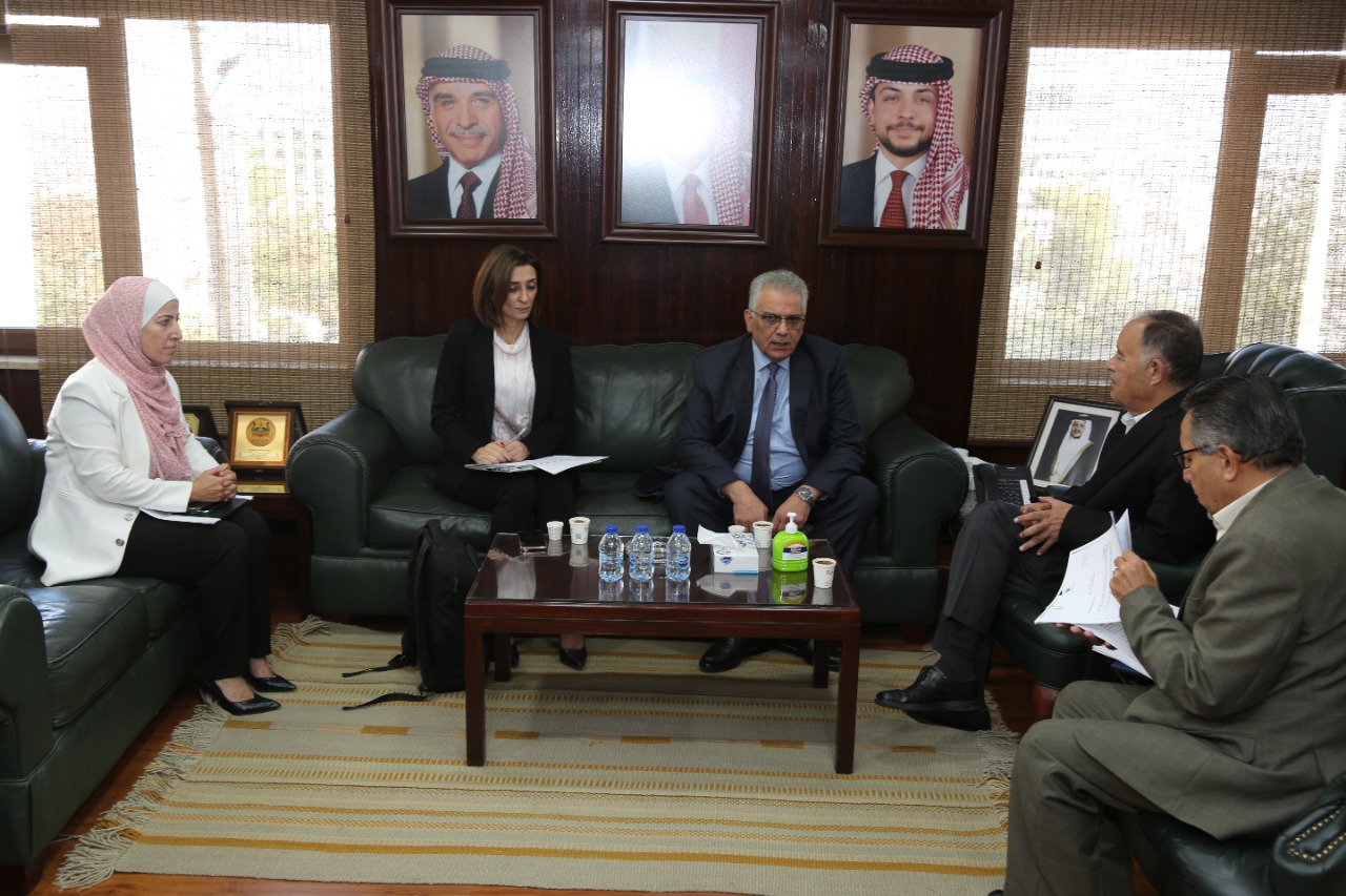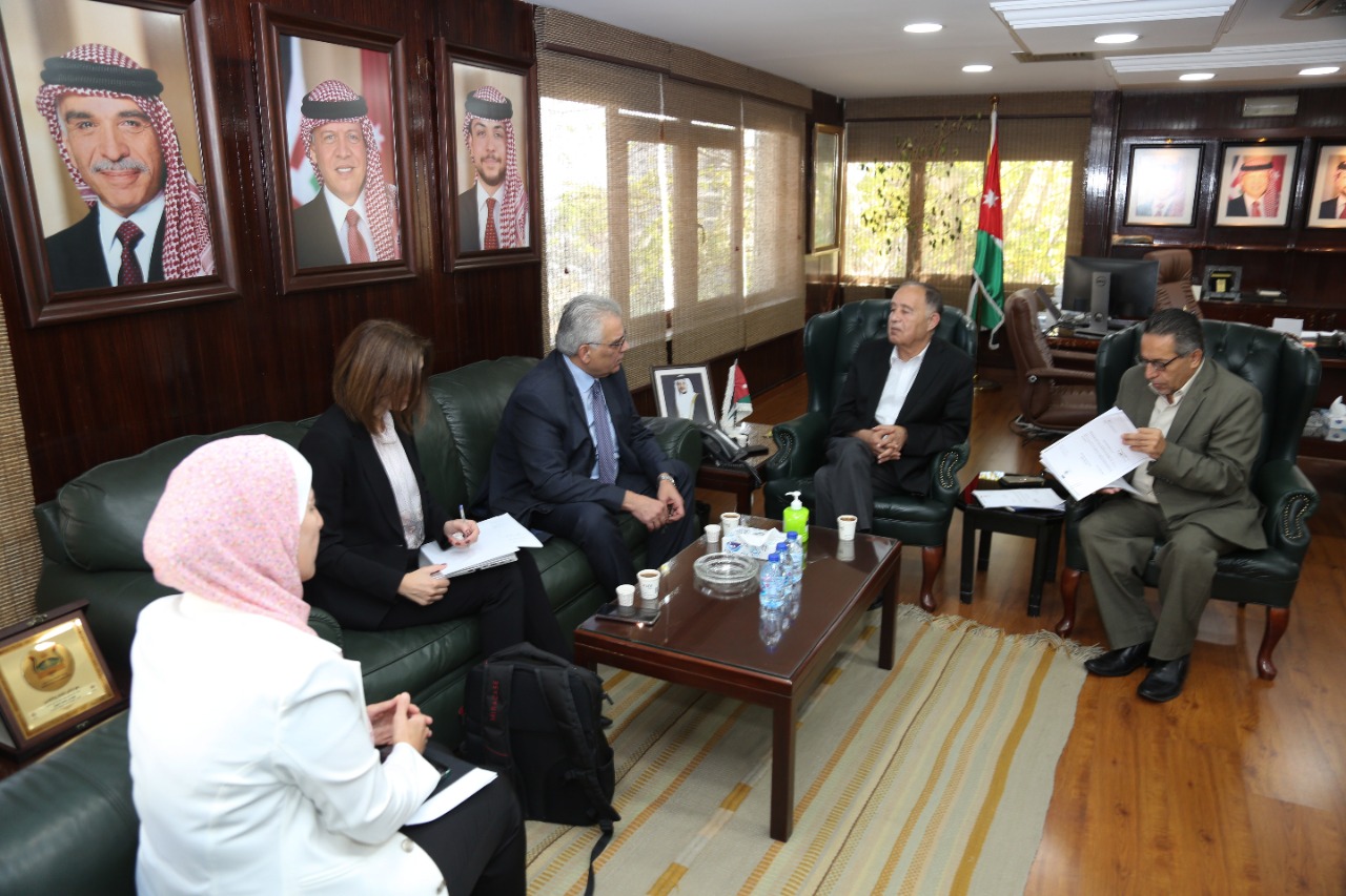 اجتمع المهندس محمد النجار وزير المياه والري في مكتبه مع رئيس سلطة المياه الفلسطينية المهندس مازن غنيم بحضور المهندسة روان السعيد من سلطة المياه الفلسطينية و أمين عام وزارة المياه والري د. جهاد المحاميد وأمين عام سلطة وادي الأردن م. منار محاسنة وبحث معهم أوجه التعاون المشترك في مجالات المياه والصرف الصحي.