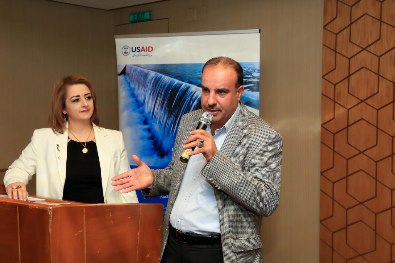 كرم امين عام وزارة المياه والري الدكتور جهاد المحاميد ومدير مشروع حوكمة قطاع المياه USAUD السيد شون مكنالي الفائزات بمبادرة رياديات قطاع المياه بالتعاون مع مشروع حوكمة قطاع المياه، الممول من الوكالة الأميركية للتنمية الدولية بحضور مساعد امين عام الشؤون الادارية والمالية/ الوزارة محمد عفيشات ومساعد امين عام الشؤون الادارية /سلطة المياه عماد القطاونه ومساعد الامين العام لشؤون الاعلام عمر سلامة ومديرة وحدة دراسات المراة نيفين الكفوف وعدد من موظفي وموظفات قطاع المياه .
