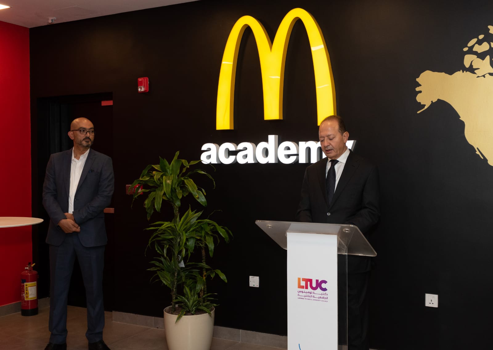 مندوباً عن وزير الصناعة والتجارة والتموين ووزير العمل يوسف الشمالي افتتح الأمين العام لوزارة العمل فاروق الحديدي (أكاديمية ماكدونالدز) التي أنشأت بالشراكة ما بين ماكدونالدز الأردن و كلية لومينوس الجامعة التقنية، بحضور رئيس مجلس إدارة شركة ماكدونالدز الأردن احمد عرموش وعميد الكلية د ايمن المقابلة.