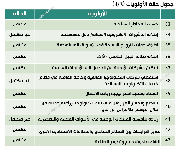 عاجل / مركز مؤشر الأداء: برنامج أولويات عمل الحكومة بالمستوى الحرج و 58% معدل الإنجاز