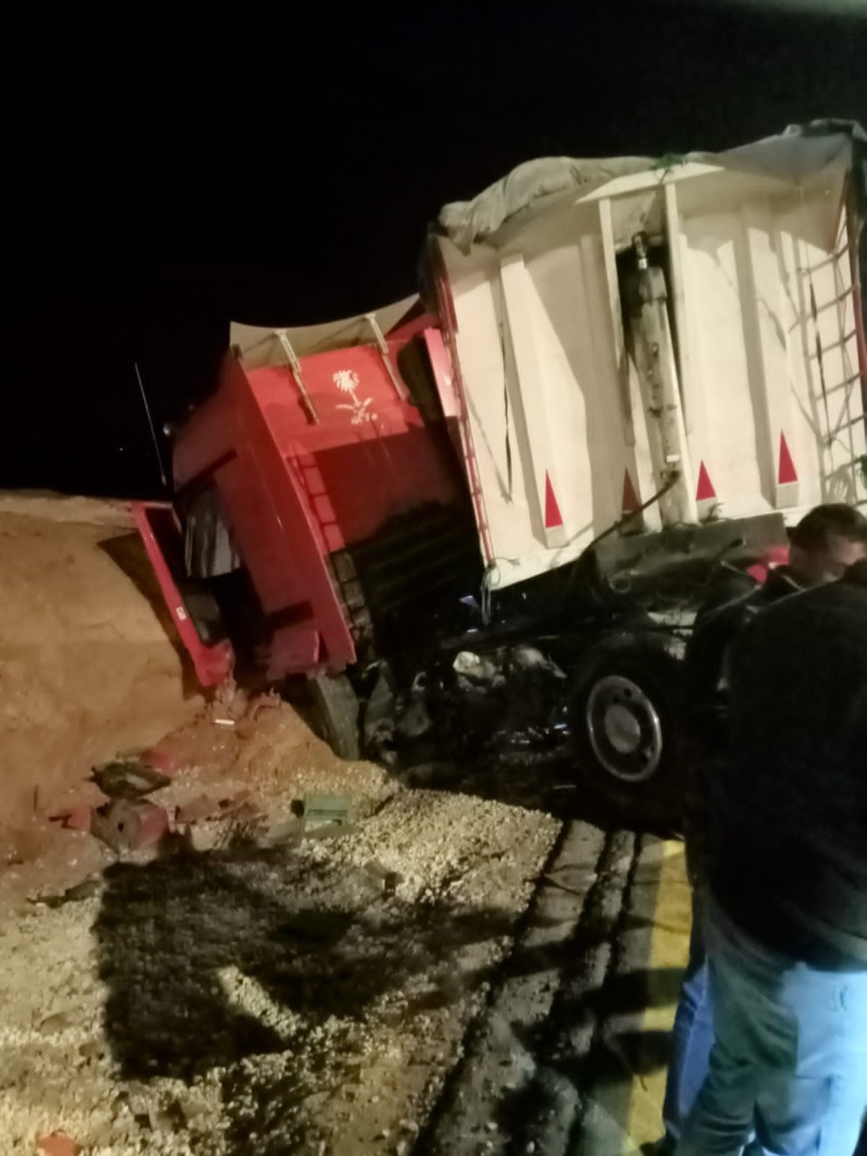 أظهرت صور متداولة وقوع حادث سير واصطدام شاحانت على طريق رأس النقب - العقبة.
