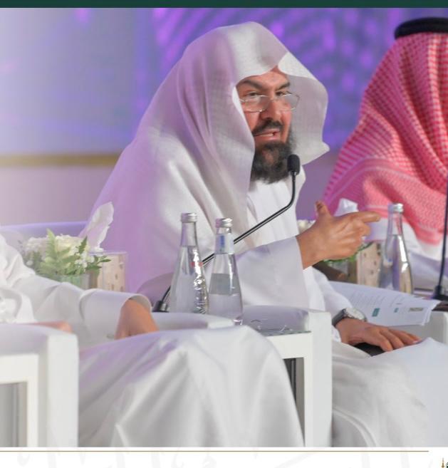 وخاطب معاليه الحاضرين قائلا " هدفنا مواكبة التحول الرقمي والتقني وفق الرؤية المباركة ٢٠٣٣ وتكريس التسامح والوسطية وايصال رسالة الحرمين الى العالم الى جانب تقديم خدمات ذات جودة عالية وعكس الصورة المشرقة والحضارية للمملكة خلق قيمة تنافسية وتسير خدمة القاصدين ومواكبة التحول وتعظيم الحوكمةً وقياس مستوى التحول الرقمي