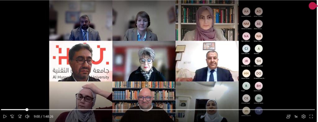 مندوبا عن رئيس جامعة البلقاء التطبيقية الأستاذ الدكتور أحمد فخري العجلوني، رعى نائب رئيس جامعة البلقاء التطبيقية للشؤون الأكاديمية الأستاذ الدكتور زكريا القضاة، بمشاركة الأمين العام لوزارة التربية والتعليم الدكتورة نجوى قبيلات، منتدى التعليم الأردني الأمريكي والذي نظمته وحدة التعاون والعلاقات الدولية في جامعة البلقاء التطبيقية بالتعاون مع جامعة الحسين التقنية وجامعة PennWest University في الولايات المتحدة الأمريكية افتراضيا عبر تقنية Teams.