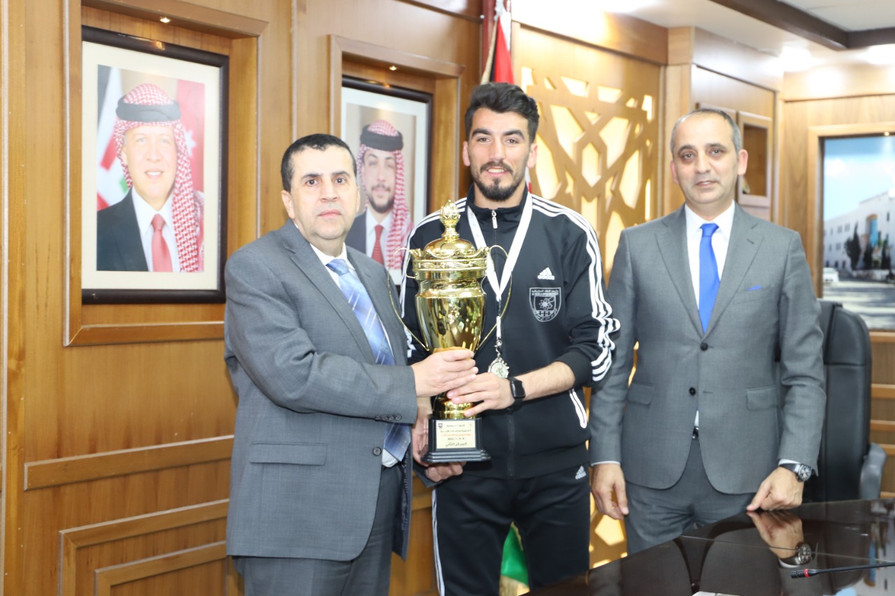 كما أكد الأستاذ الدكتور العجلوني على أن الجامعة لن تألو جهدا في تقديم كل سبل الدعم لطلبتها لتمكينهم من المشاركة في أي مسابقة أو نشاط رياضي يساهم في الرقي بمستويات متقدمة للجامعة وفي جميع المحافل المحلية والإقليمية والدولية.