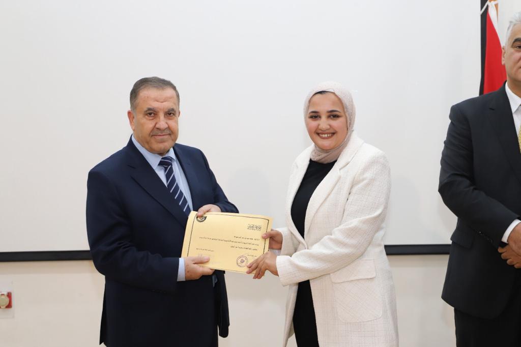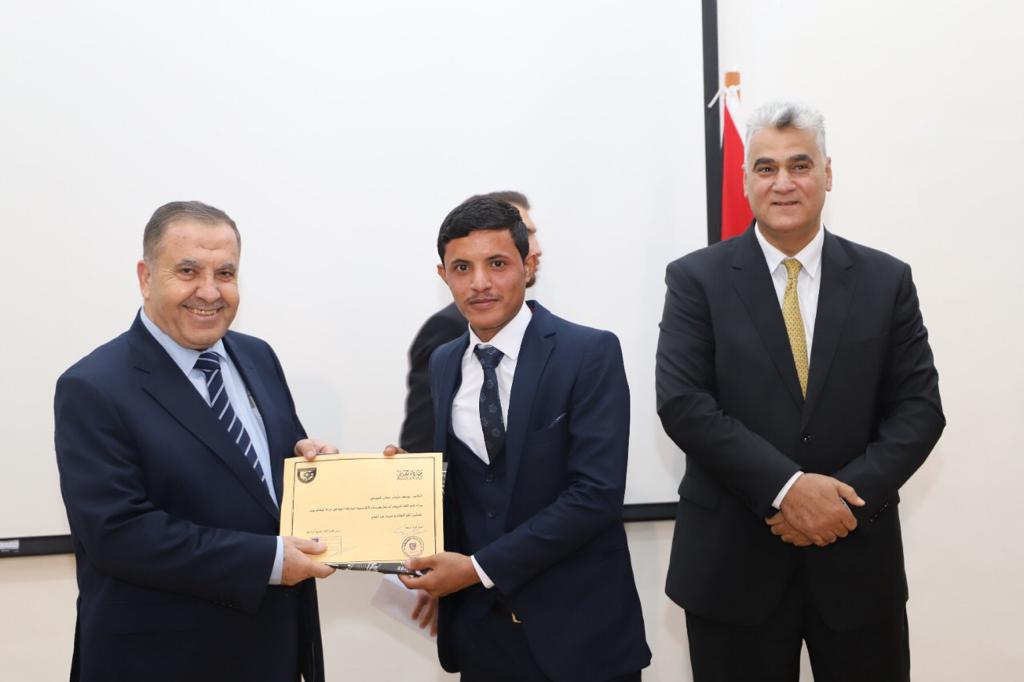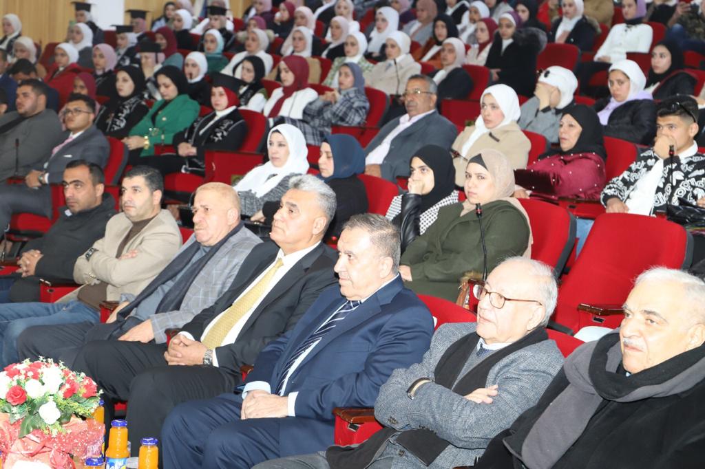 وفي نهاية الحفل قام نائب رئيس الجامعة للشؤون الاكاديمية بتكريم العالمين الجليلين في اللغة العربية استاذ علم النحو واللغويات الاستاذ الدكتور جعفر نايف عبابنة وأستاذ علم البلاغة والنقد الاستاذ الدكتور عبدالكريم احمد الحياري ومدرسة اللغة العربية والأدب السيدة هيا عربيات كما وتم تكريم عدد من اعضاء الهيئة التدريسية والإدارية في الكلية وتسليم خريجي قسم اللغة العربية المتوقع تخرجهم شهادات تقديرية مقدما المباركة والتهنئة لهم ولذويهم .