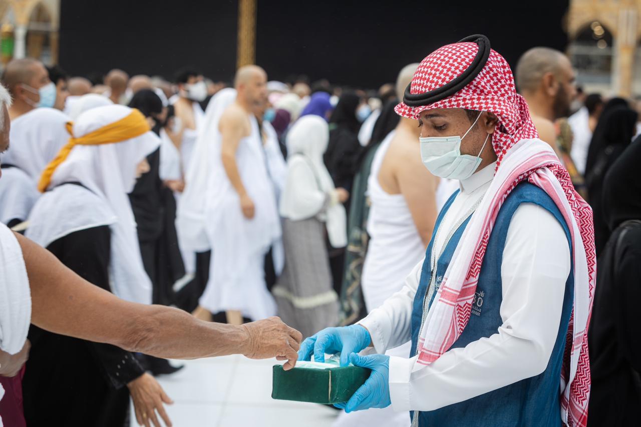 بل تم توفير اكثر من (٣٠٠) الف عبوة ماء زمزم و(500) عامل لتوزيع الماء المبارك على المصلين في أرجاء المسجد الحرام، مع عمليات تعقيم وتطهير مستمرة للشنط والحافظات والعربات المخصصة لتوزيعها على القاصدين تراعي أعلى المعايير الصحية، كما تم تجهيز من (4731) حافظة ماء زمزم موزعة في أرجاء المسجد الحرام، يستهلك من خلالها اكثر(٩٠٠ ) ألف لتر، كما يقوم (200) مشرف سعودي مؤهل للقيام بمراقبة الأعمال الميدانية على ( 4000 ) عامل وعاملة، يقومون بغسل المسجد الحرام (10) مرات يومياً مستخدمين (130) ألف لتر من المطهرات الصديقة للبيئة وفرش أكثر ( 15) ألل سجادة .