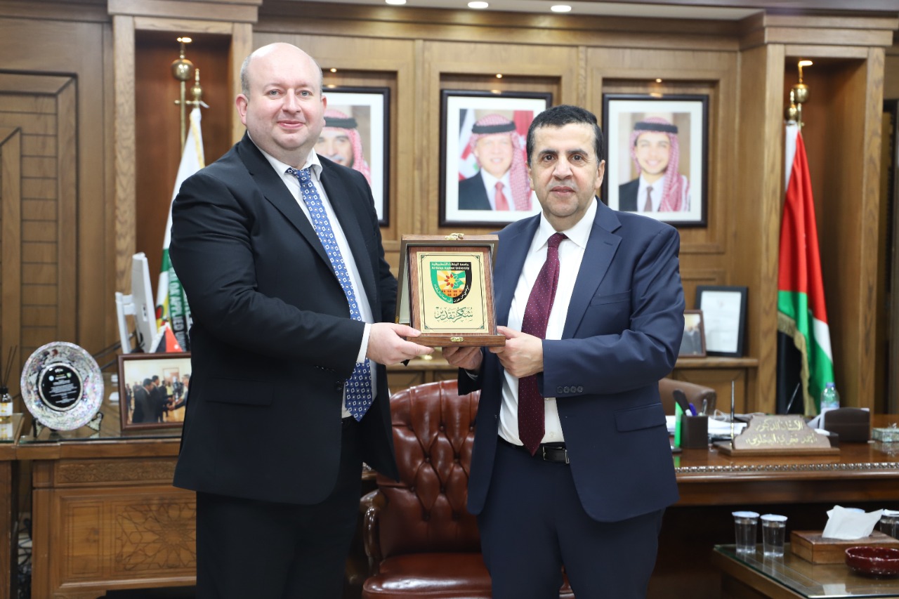 استقبل رئيس جامعة البلقاء التطبيقية الاستاذ الدكتور أحمد فخري العجلوني اليوم في مكتبه الملحق الثقافي الروسي في عمان السيد أليكسي بوكين والوفد المرافق له، بهدف تعزيز التعاون البحثي والاكاديمي والتبادل الثقافي بين البلقاء التطبيقية والجامعات الروسية.