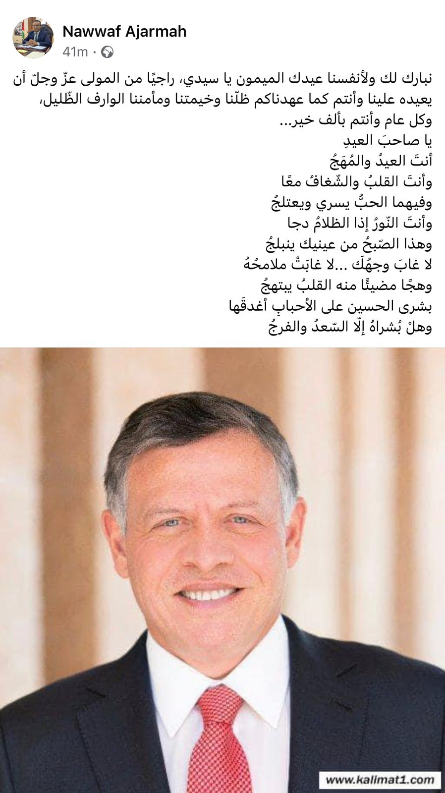 كتب الدكتور نواف العجارمة أمين عام وزارة التربية والتعليم في إدراج عبر الفيسبوك بمناسبة عيد ميلاد جلالة الملك :-