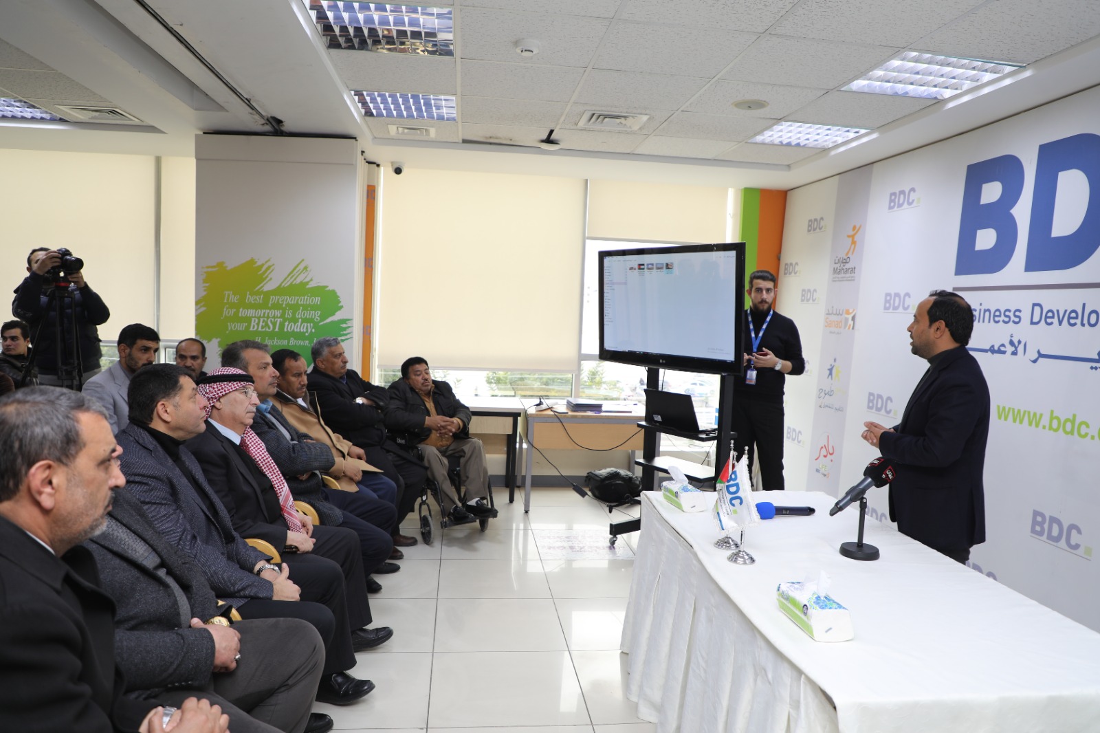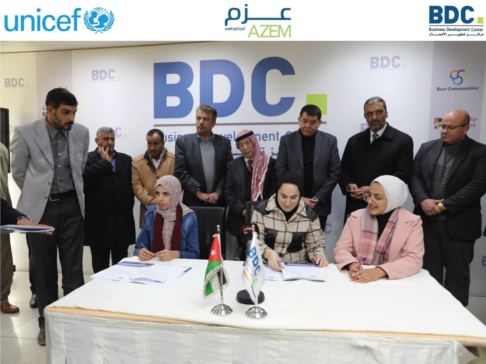 وقع مشروع "عزم" الدعم الاقتصادي للتشغيل الذاتي أحد برامج مركز تطوير الأعمالBDC- و المدعوم من منظمة الأمم المتحدة للطفولة اليونيسيف- unicef بحضور عدد من النواب ورؤساء البلديات والشركاء اتفاقيات مع 18 مستفيد من الجمعيات والشباب الباحثين عن العمل من أبناء البادية الشمالية والجنوبية للبدء بمشاريع اقتصادية مستدامة توفر لهم فرص العمل.