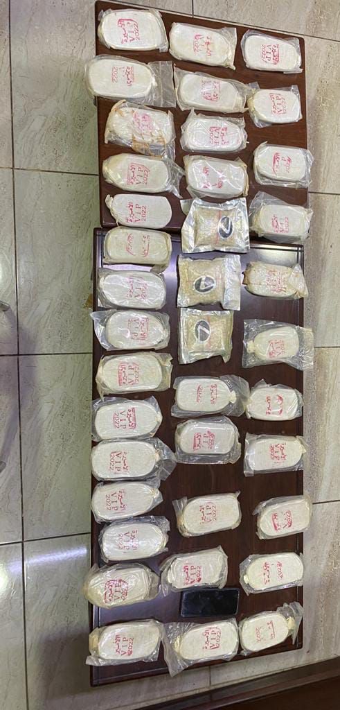 وفي سياق متّصل وفي احدى مناطق البادية الوسطى دوهم منزل احد تجار المخدرات وأُلقي القبض عليه وضبط داخل منزله بعد تفتيشه 35 كف حشيش و 6 آلاف حبة مخدرة .
