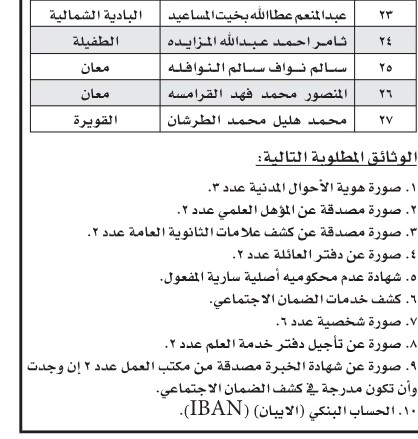 دعا ديوان الخدمة المدنية بالتنسيق مع عدد من الوزارات والمؤسسات الحكومية الأشخاص التالية لإجراء المقابلات الشخصية والامتحان التنافسي .