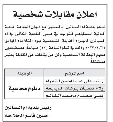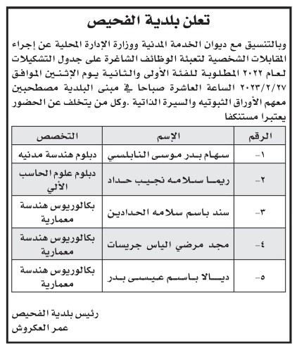 وظائف حكومية شاغرة ومدعوون للمقابلات الشخصية-أسماء