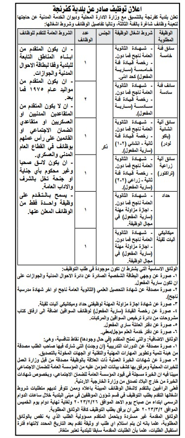 كما أعلن عن وظائف شاغرة بالتنسيق مع الوزارات والمؤسسات حكومية