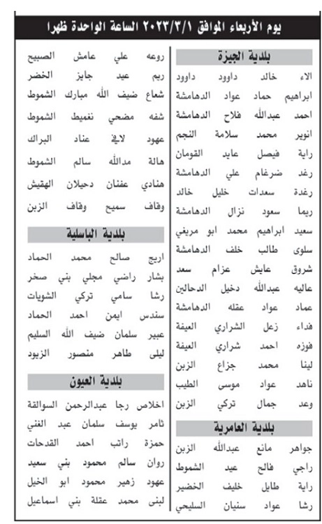 دعت مؤسسات حكومية وبالتنسيق مع ديوان الخدمة المدنية، الخميس، عدداً من المرشحين لمراجعتها لاستكمال إجراءات التعيين.