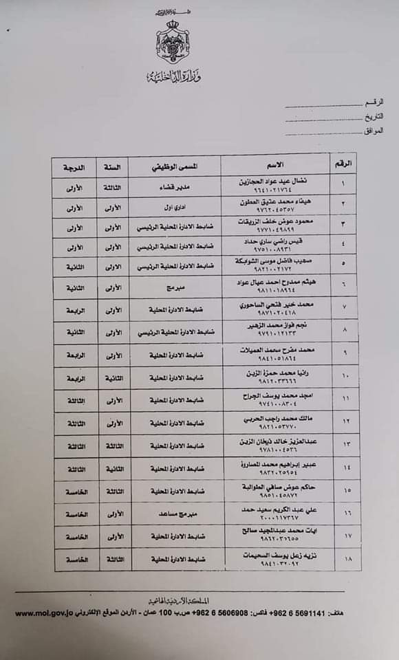تعديل درجات عدد من الموظفين في وزارة الداخلية-أسماء