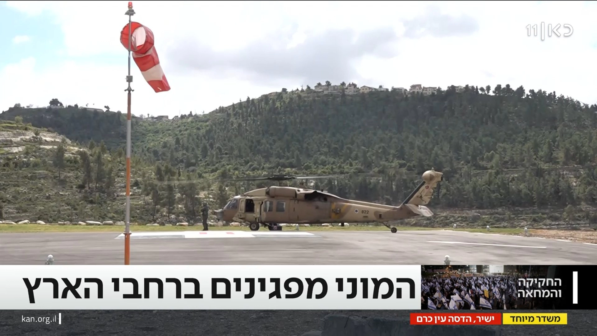 وعلى إثر ذلك، وبعد فشله في التحرك برا، عمل نتنياهو على تضليل المتظاهرين، من خلال تجهيز مروحية ينشوف أو "البومة"، لتقله من مستشفى هداسا بالقدس إلى مطار بن غوريون.