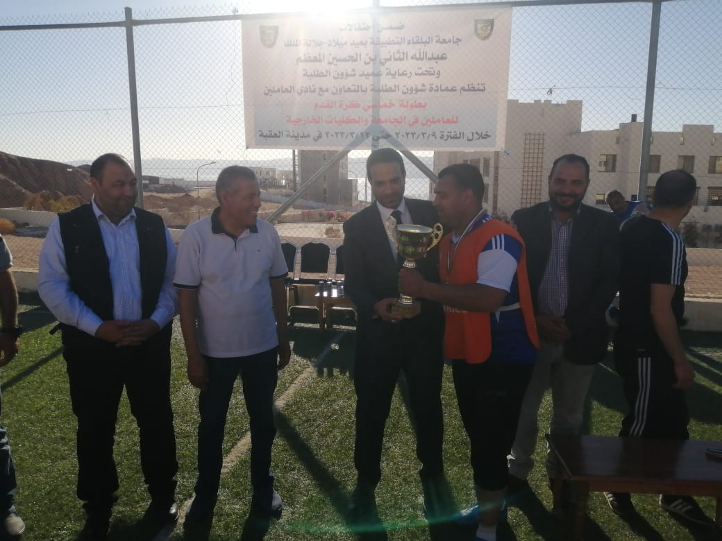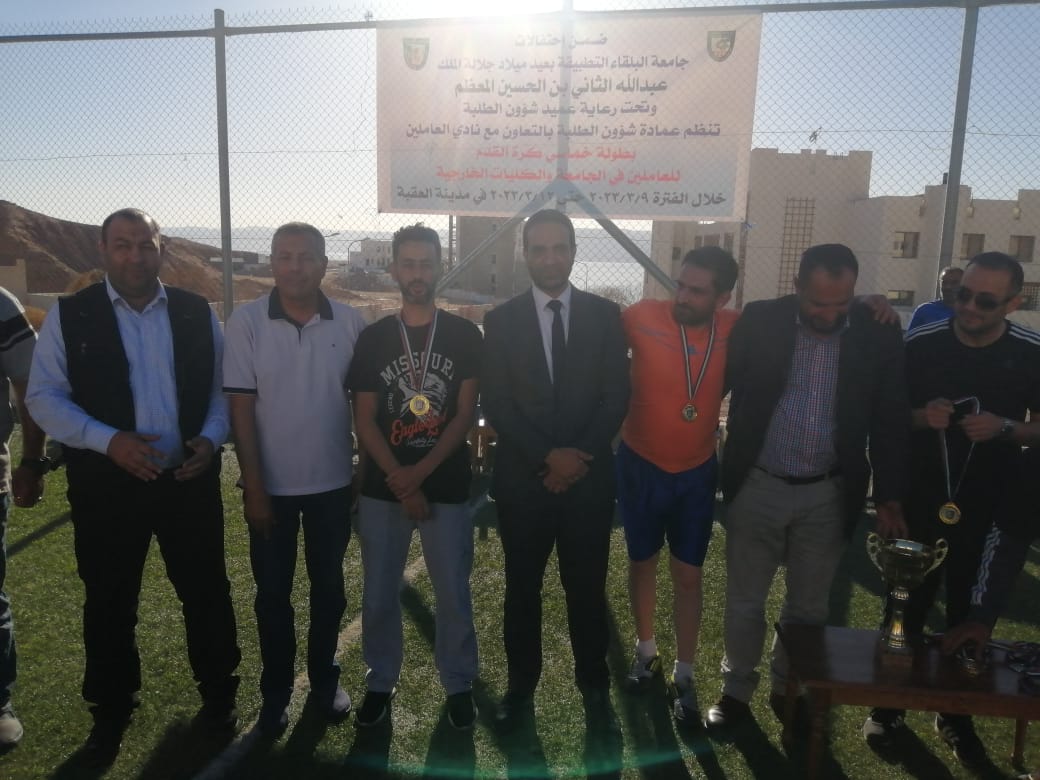 وحصل فريق كلية الاميرة رحمة على المركز الثاني، كما تم تتويج الفرق الفائزة وتوزيع الجوائز بحضور نائب عميد شؤون الطلبة الدكتور عبداللطيف ابورمان ورئيس نادي العاملين المهندس علي الدباس، والتي تم تنظيمها بمناسبة احتفالات جامعة البلقاء التطبيقة بعيد ميلاد صاحب الجلالة الملك عبد الله الثاني ابن الحسين المعظم في مدينه العقبة.