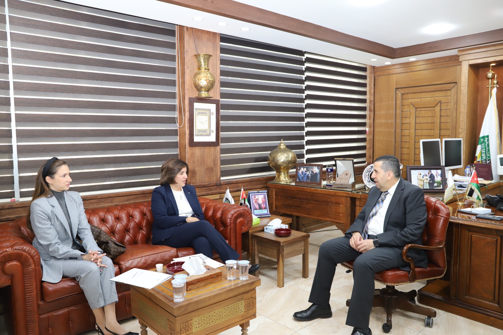 التقى رئيس جامعة البلقاء التطبيقية الاستاذ الدكتور احمد فخري العجلوني في مكتبه اليوم عضو مفوضي الهيئة المستقلة للانتخاب الدكتورة عبير دبابنة وممثلة مؤسسة ولي العهد ريم بغمور بحضور عميد شؤون الطلبة الدكتور خالد الزعبي.