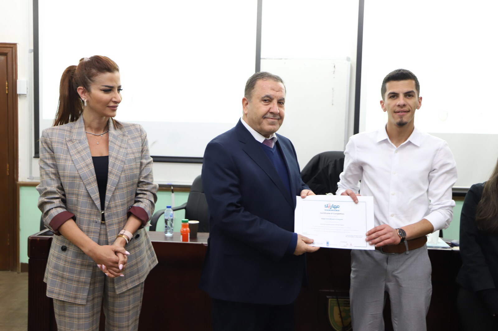 الاستاذ الدكتور زكريا القضاة نقل تحيات رئيس جامعة البلقاء التطبيقية الاستاذ الدكتور احمد فخري العجلوني ومباركته لهم لمشاركتهم في برنامج مهارتك شركاء للأفضل معتبرا ان تنفيذ مثل هذه البرامج وبالتعاون مع شركاء الجامعة من مختلف المؤسسات المحلية والدولية يساهم في توفير فرص تدريب نوعي للطلبة ويمكنهم من بناء قدراتهم ومهاراتهم ويصقل الشخصية وبالتالي مساعدتهم في تنفيذ مشاريعهم بالإضافة الى خلق فرص عمل لهم .