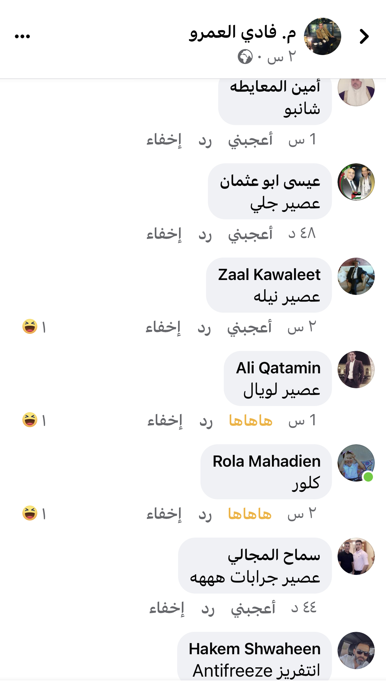وقال الناشط اكثم الصرايرة ان هذا ليس عصير بل معطر غسيل في تعليق ساخر عبر الفيسبوك جاء فيه :-