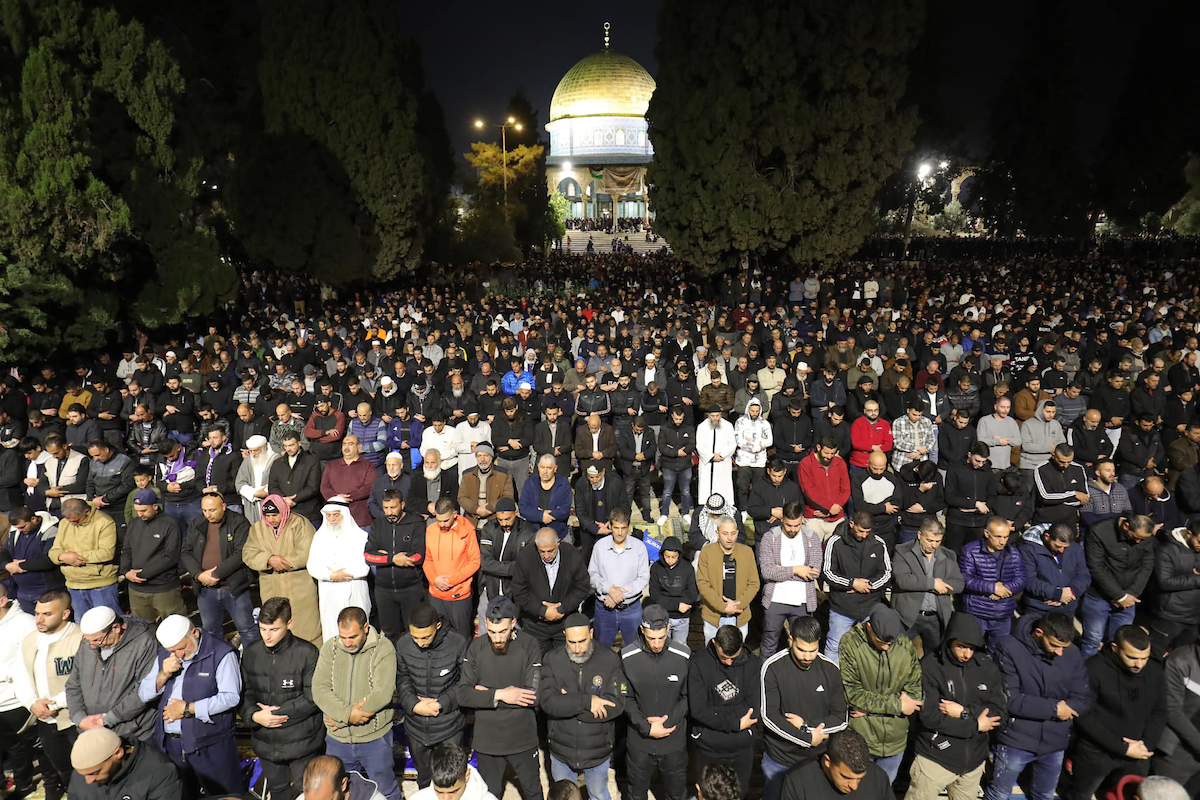 وقالت دائرة الأوقاف الإسلامية في القدس: إن نحو 200 ألف فلسطيني أدوا صلاة العشاء والتراويح في المسجد الأقصى هذه الليلة.
