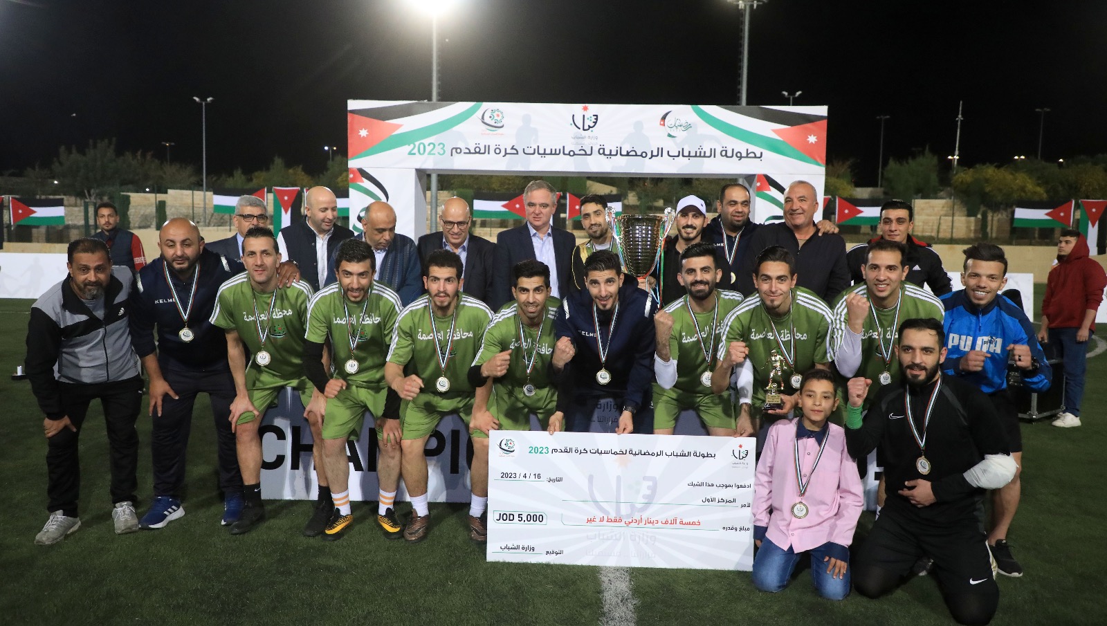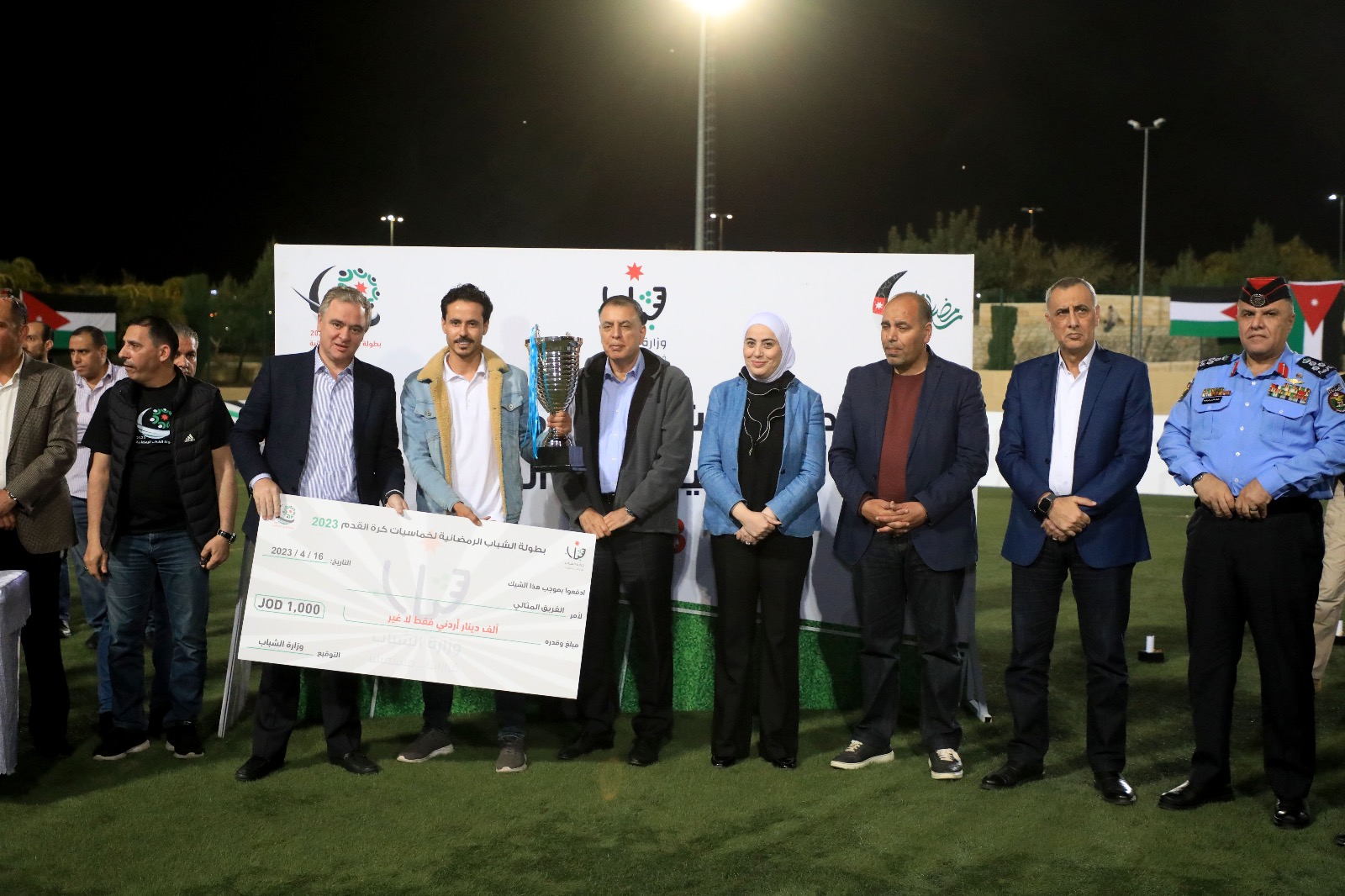 مندوبا عن رئيس الوزراء، رعى وزير الشباب محمد النابلسي، مساء اليوم الأحد، المباراة الختامية لبطولة الشباب الرمضانية لخماسيات كرة القدم 2023 في العاصمة عمان بحضور وزراء الداخلية مازن الفراية والتنمية الاجتماعية وفاء بني مصطفى و محافظ العاصمة ياسر العدوان ومحافظ جرش فراس الفاعور ومدير شرطة جنوب عمان سفيان الربابعة و أبناء المجتمع المحلي.