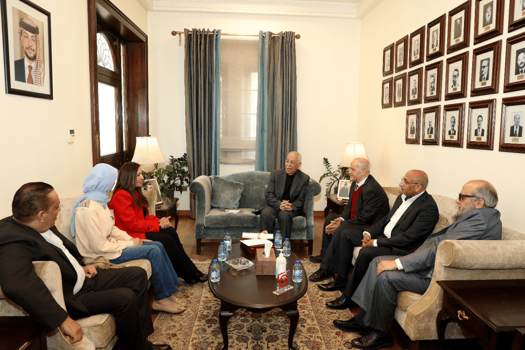 التقى معالي رئيس الديوان الملكي الهاشمي السيد يوسف حسن العيسوي في الديوان الملكي الهاشمي اليوم السبت الموافق 29-4-2023 رئيسة واعضاء الملتقى الثقافي للمكفوفين السيدة سهير احمد عبدالقادر القريوتي