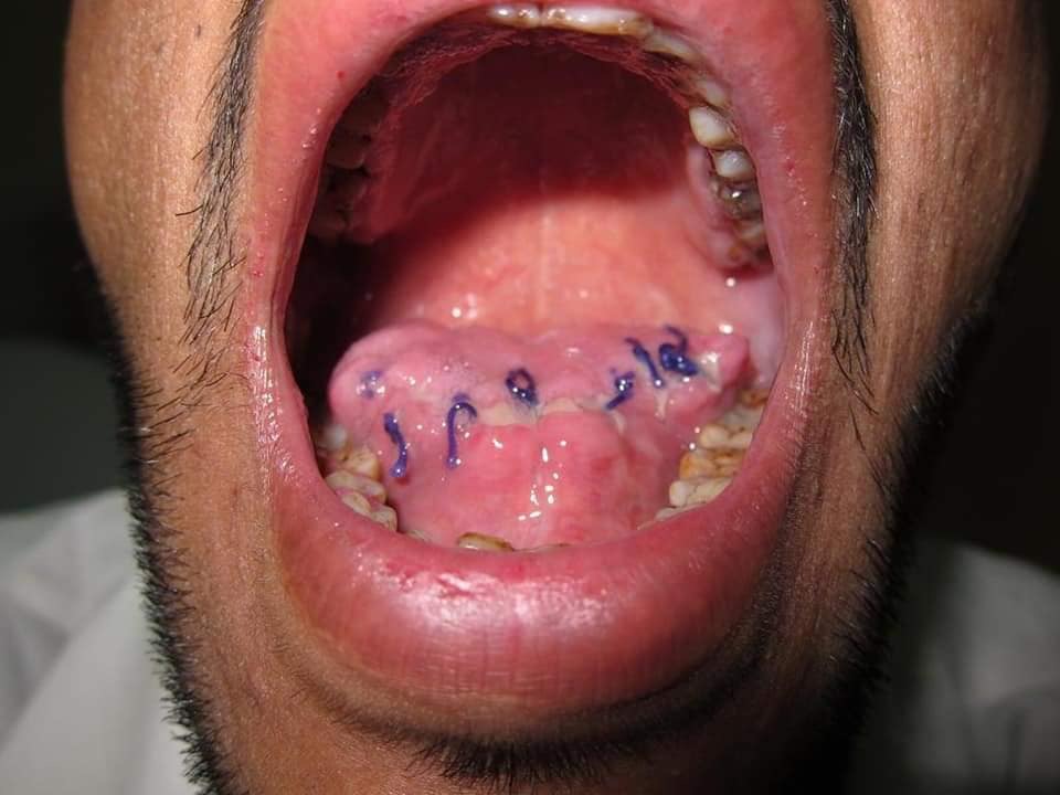 قام الدكتور محمد علي المعايطه بزرع لسان روعه في النجاح وتعتبر هذه الأولى على مستوى العالم تتم بنجاح ولا يرفضها الجسم بعد ان تعرض المريض لعصابه ليسرقوا ماله، المريض رفض ان يعطيهم وقام يصرخ عليهم فما كان لديهم أدهى وأمر . ثبتوه على الأرض وقاموا بقطع لسانه، اخوه صديقي، اتصل معي يبكي وينحب اخوه وقلت له ان يضع اللسان المبتور بالثلج ، وخلال نصف ساعه التقينا بإحدى مستشفيات عمان، الذين كنت على اعلى اتصال معهم ومع استشاري التخدير كي يحضروا المستلزمات الطبيه والمضادات الحيوية مع كميه من الستيرويد وادوية المناعة كي تتم العمليه بدون رفض و خسارة ثلاث ارباع اللسان، وبالفعل التقينا بالمستشفى و قد أعطيته أربعة وحدات دم كون النزيف كان شديدا ونزلت قوة الدم الى رقم سبعه، بعد تعقيم المريض ووضع اللسان المبتور بمضاد حيوي كي لا تفشل العمليه، طلبت الميكروسكوب الجراحي وقمت بتنظيف وتعقيم ربع اللسان المتبقي بالفم، وبفضل الله وجدت شريان ووريد وقمت بوصلها مع الشريان والوريد الموجود باللسان المقطوع وبدقه متناهيه أعدت ألياف العضلات اللسانيه مكانها، وهنا بدأت أعصابي تتوتر، هل ستكلل العمليه بالنجاح ام لا، بعد عشرين دقيقه بدت وكأنها عشرين سنه بدأ السان المقصوص يتحول الى اللون الزهري وتأكدت من ذلك بوخز ابر بالقطعه المقصوصه وكم كانت فرحتي عندما بدأ الدم بالنزيف، لقد فعلتها، نعم لقد فعلتها ونجحت بفضل الله، تابعت المريض لعدة ايام قبل ان أزف الإنجاز العالمي للناس ونشره كبحت علمي. الان المريض يأخذ جلسات نطق وبحياتي لم ارى اسرع من التأمه، المريض الان يتكلم ويمارس حياته بشكل طبيعي. الحمدلله