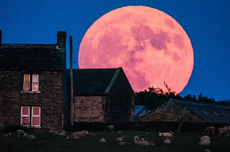 عشاق التصوير في المملكة المتحدة، التقطوا صورا رائعة لقمر الفراولة، حيث كان مرئيا للجمهور من الساعة 21:00 بتوقيت غرينتش يوم السبت وحتى قرابة الساعة 4:30 من يوم الأحد.