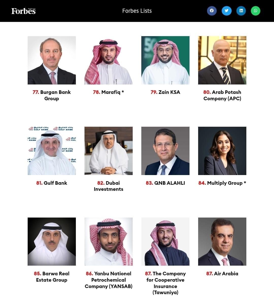 شركة البوتاس العربية من أكبر مائة شركة في الشرق الأوسط