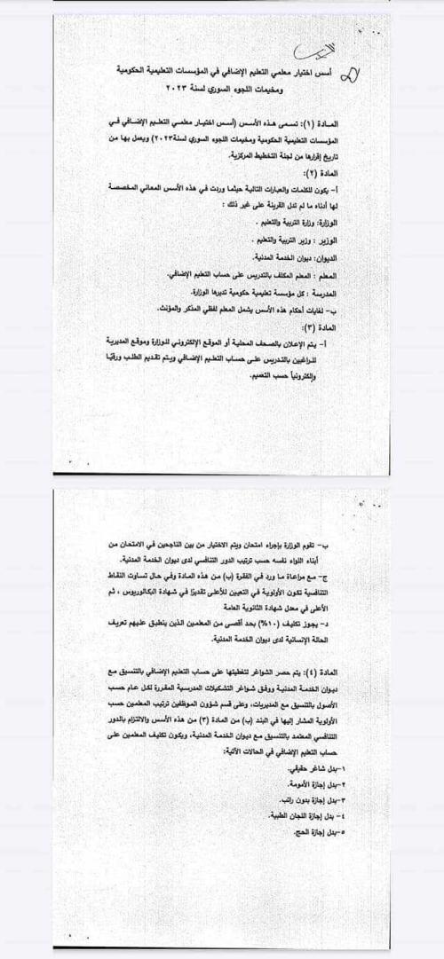 اعلنت وزارة التربية والتعليم عن الاسس الجديدة لاختيار المعلمي العاملين على حساب التعليم الاضافي للعام ٢٠٢٣ .