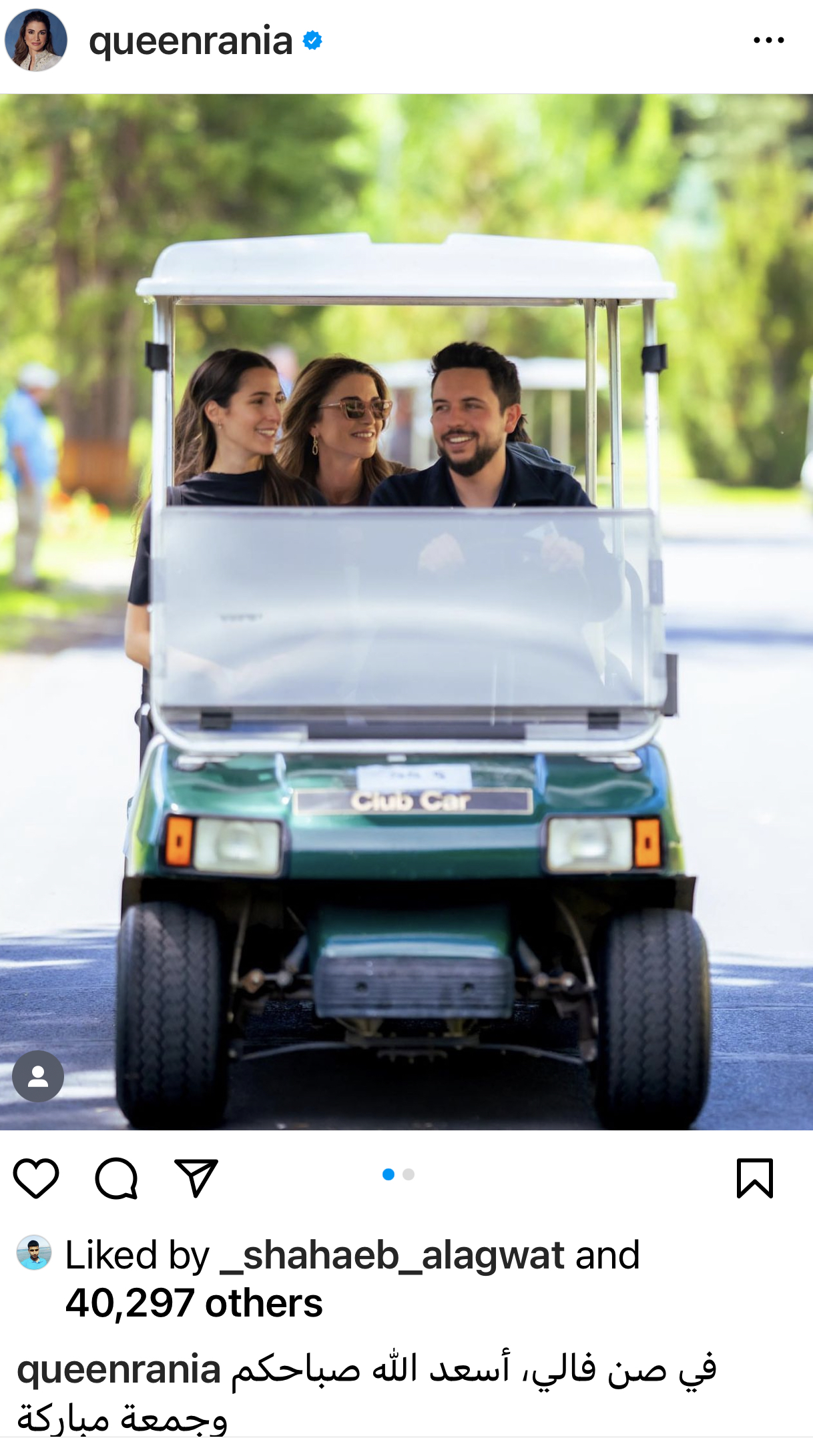 تحرص جلالة الملكة رانيا على نقل اللحظات التي تجمعها بعائلتها حتى لو كانت في إطار العمل.. في أحدث الصور التي شاركتها الملكة رانيا العبدالله، صباح اليوم كانت من ملتقى صن فالي الاقتصادي في الولايات المتحدة الأميركية وشاركت صورة جمعتها بولي العهد الامير الحسين وزوجته الاميرة رجوة وعلقت : في صن فالي، أسعد الله صباحكم وجمعة مبارك