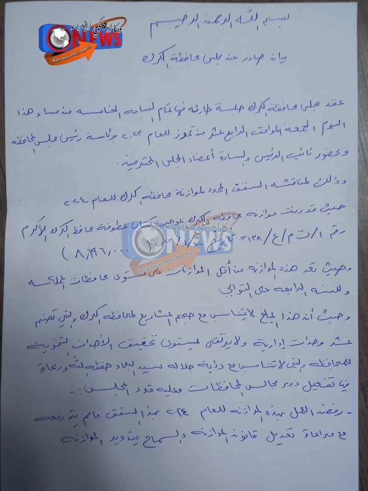 عاجل / رفض موازنة مجلس محافظة الكرك اللامركزية لعام 2024