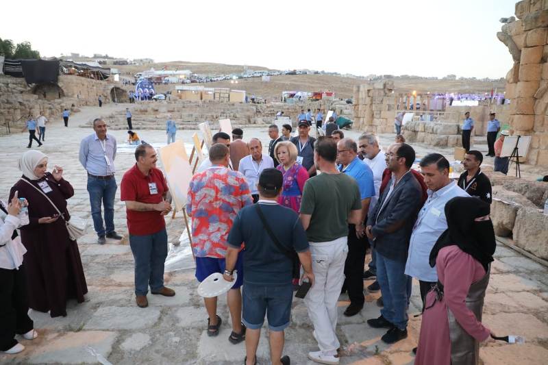 وكانت النجار قد بدأت جولتها، بزيارة "سمبوزيوم الفن التشكيلي" الذي ينظمه المهرجان بالتعاون مع رابطة الفنانين التشكيليين الأردنيين، بمشاركة 8 فنانين عرب، وفنان تركي وآخر من بيلاروسيا، و32 فنانا أردنياً بدأوا بإنجاز لوحاتهم الفنية.